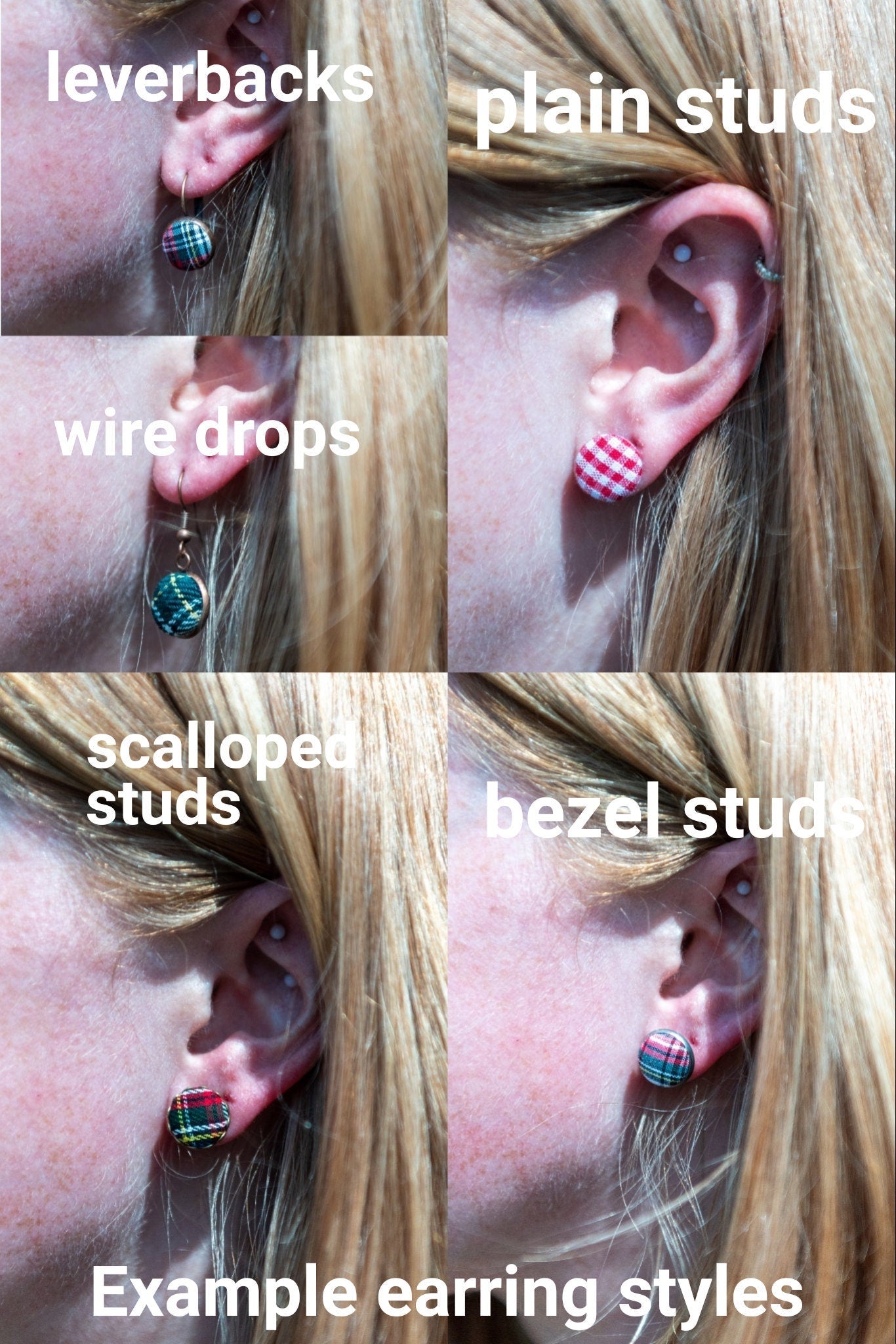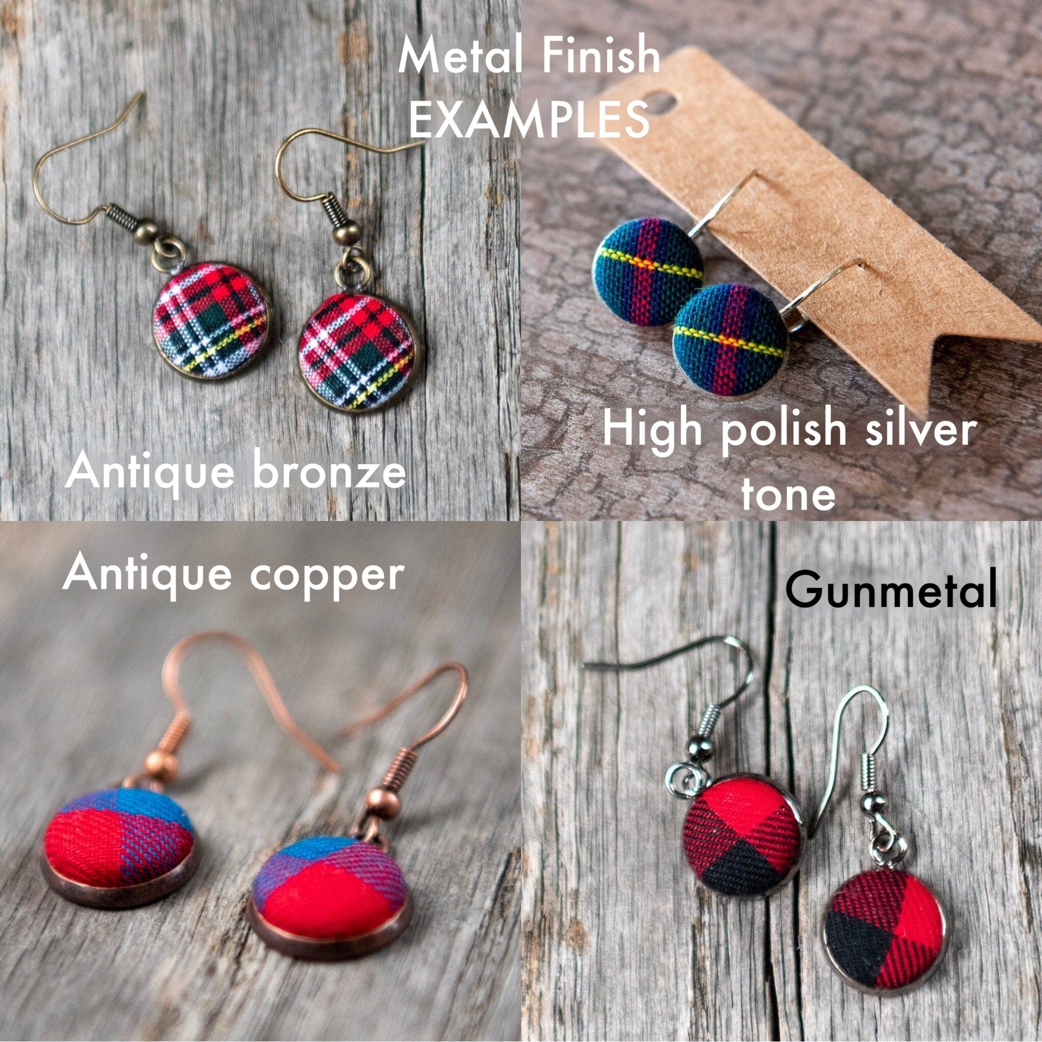 Adorn your ears with these exquisite Stewart Dress Tartan Earrings, featuring a plaid lever back design with fabric-covered buttons. Drape yourself in refined elegance with the Stewart Dress Tartan Earrings. Crafted with a plaid lever back design adorned with fabric-covered buttons, these earrings exude luxury and sophistication. Elevate your outfit to new heights with this exclusive statement piece.