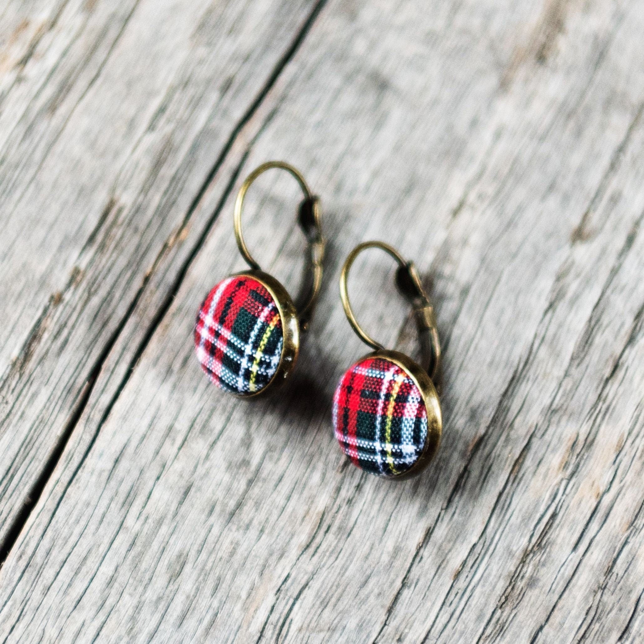 Stewart Dress Tartan Earrings - Plaid Lever Back Dangle and Drop Design in Red